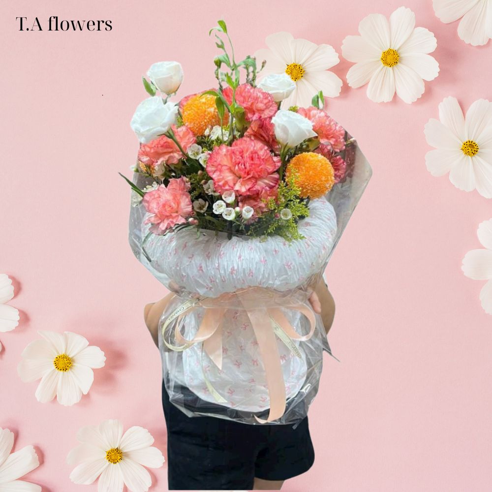 Bó hoa đẹp bó hoa nhỏ gọn đẹp 0043 được thiết kế bởi đội ngũ nghệ nhân cắm hoa chuyên nghiệp của SHOP HOA TƯƠI T.A FLOWERS với nhiều năm kinh nghiệm trong ngành. Mỗi chi tiết trong giỏ hoa đều được chăm chút tỉ mỉ, từ việc lựa chọn hoa đến cách sắp xếp để tạo nên một tác phẩm nghệ thuật hoàn hảo.