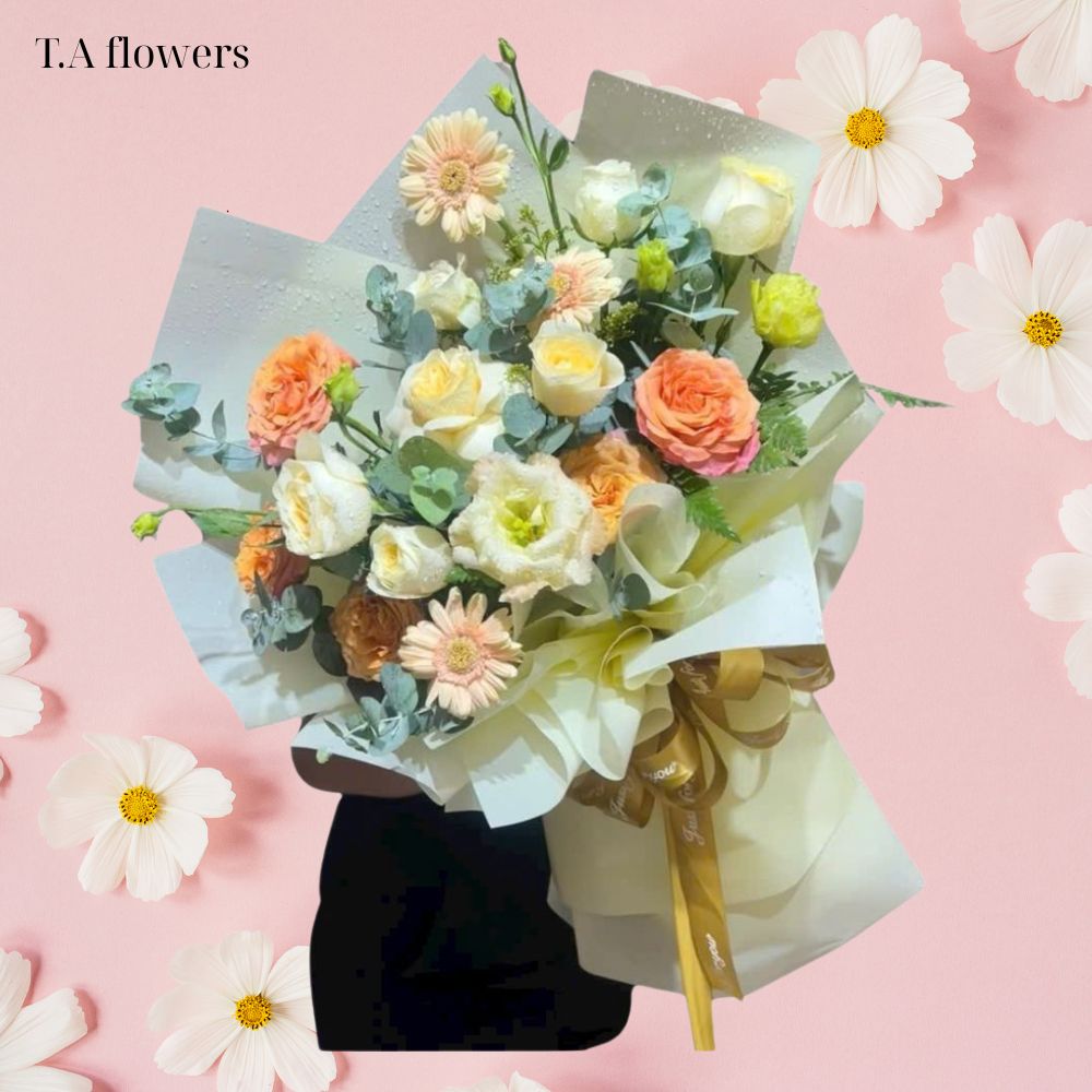 SHOP HOA TƯƠI T.A FLOWERS cung cấp nhiều lựa chọn về kích thước và giá cả cho Bó hoa đơn giản hoa tử cậu mix hoa cát tường 0478, phù hợp với nhu cầu và ngân sách của khách hàng.