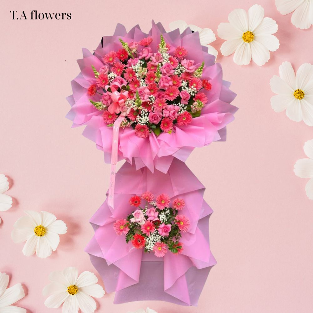 SHOP HOA TƯƠI T.A FLOWERS cung cấp nhiều lựa chọn về kích thước và giá cả cho Kệ hoa chúc mừng khai trương hoa chúc mừng 0510, phù hợp với nhu cầu và ngân sách của khách hàng.