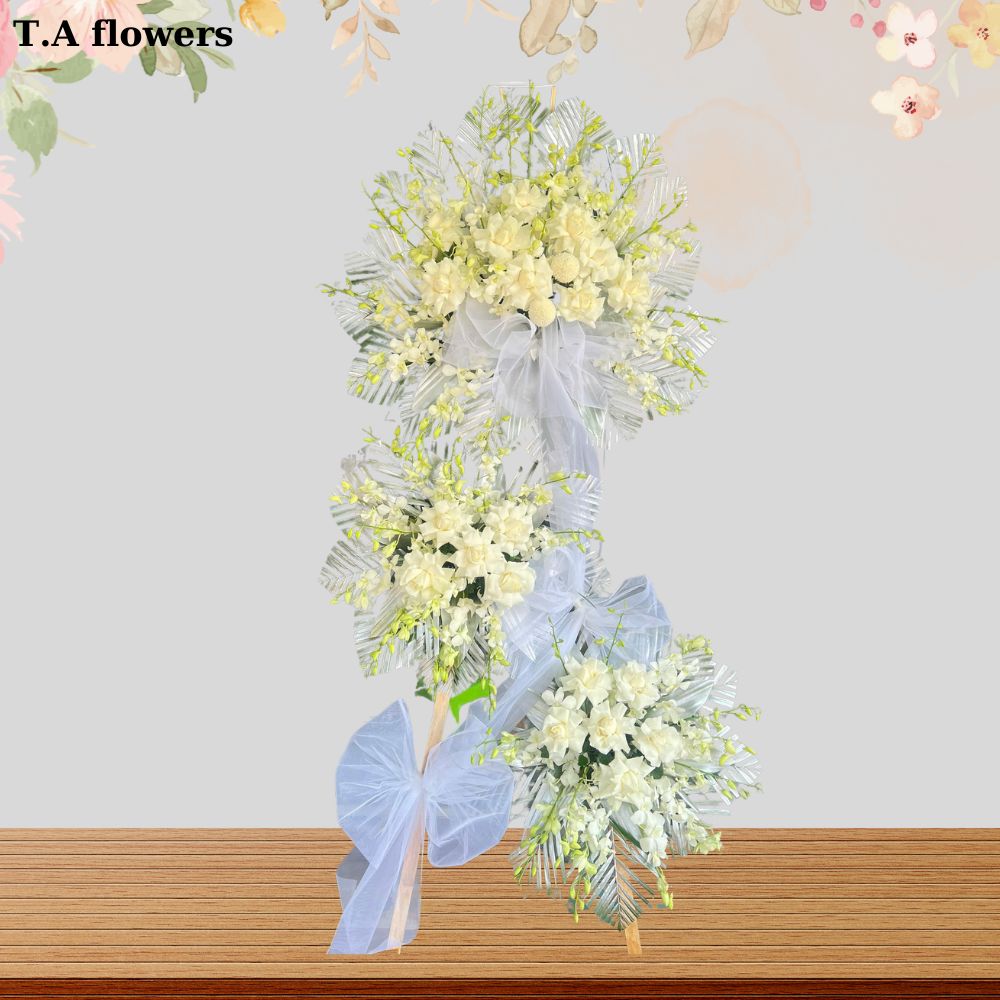 SHOP HOA TƯƠI T.A FLOWERS cung cấp nhiều lựa chọn về kích thước và giá cả cho Lẵng hoa chia buồn mua vòng hoa chia buồn 0244, phù hợp với nhu cầu và ngân sách của khách hàng.
