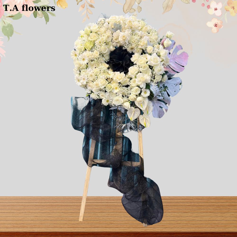 SHOP HOA TƯƠI T.A FLOWERS cung cấp nhiều lựa chọn về kích thước và giá cả cho Vòng hoa tang lẵng hoa đám tang 0236, phù hợp với nhu cầu và ngân sách của khách hàng.